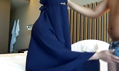 Voyeur tapes an arab hijab girl having missionary hook-up with a boy on the bed