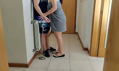 schlampenfrau fesselt und bohrt lieferjungen, bis er eine ladung in sie bläst