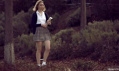 jessica rechts wird gebohrt, während sie ihre schuluniform trägt