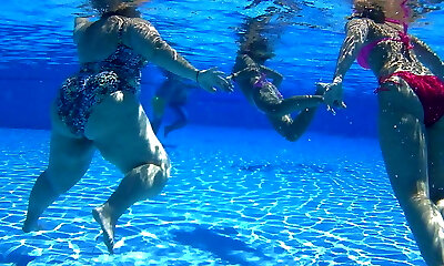 drei teen studentinnen zeigen arsch und gruppensex im pool