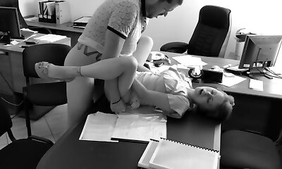 The clerk fucks the office cleaner and the assistant in turn. Cunnilingus and dt in the office. s3