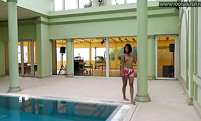 zierliches teen wird im pool gefickt, drinnen und schluckt den cumshot