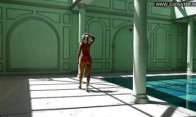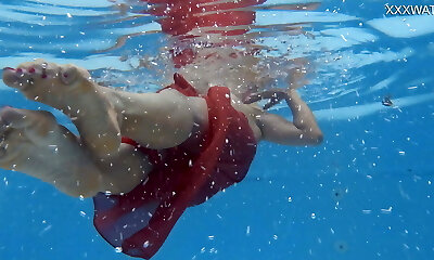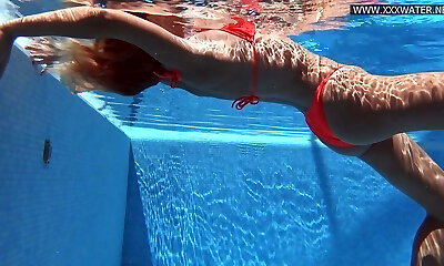 super heiß sandy-haired model marketa schwimmen nackt in einem pool
