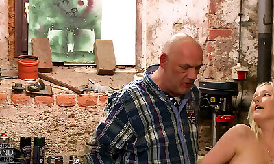 Ugly senior pervert polishes soaking Czech pussy doggy outdoors