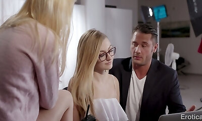 2 senior Guys Fuck Teen with Glasses at Office - GERMAN RETRO