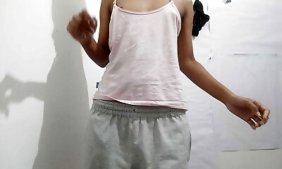 Standing up with my petite Latina wifey with a white ass and pinkish vagina, she has diminutive tits that I love and I like to gr