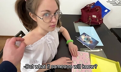 Shy student dame Kira Roller is nailed in her tight and juicy butt hole