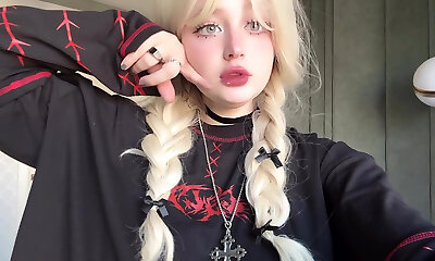May i cum in my tights and then fill your mouth with real SQUIRT? Steamy teenie Goth girl videocall you