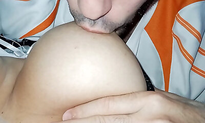 My hubby is addicted to sucking my hefty natural fun bags that's why I always love him, my nipples get immense and hard part 2